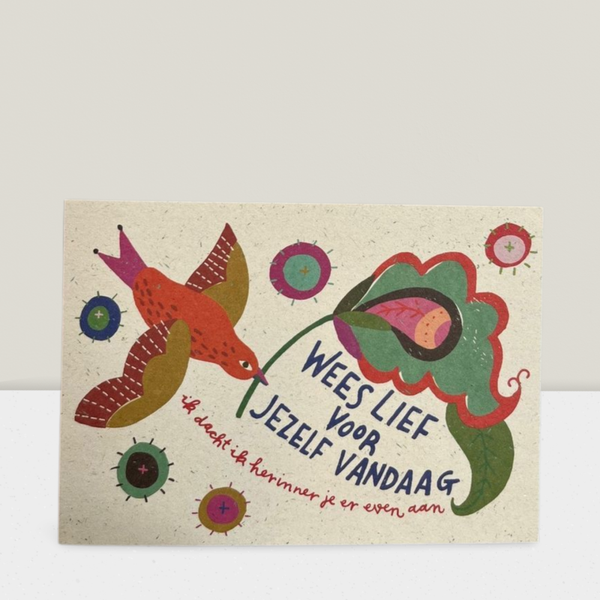 - Een collectie van 5 met zorg uitgezochte wenskaarten om iemand uit je omgeving goede moed te wensen.